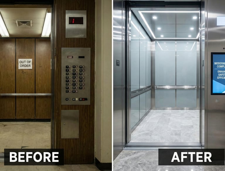 Upgrading existing elevators with modern technology to enhance safety, efficiency, and appearance.